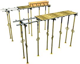 Estrutura suporte para cofragem recuperável, composta de: travessas metálicas e acessórios de montagem. |